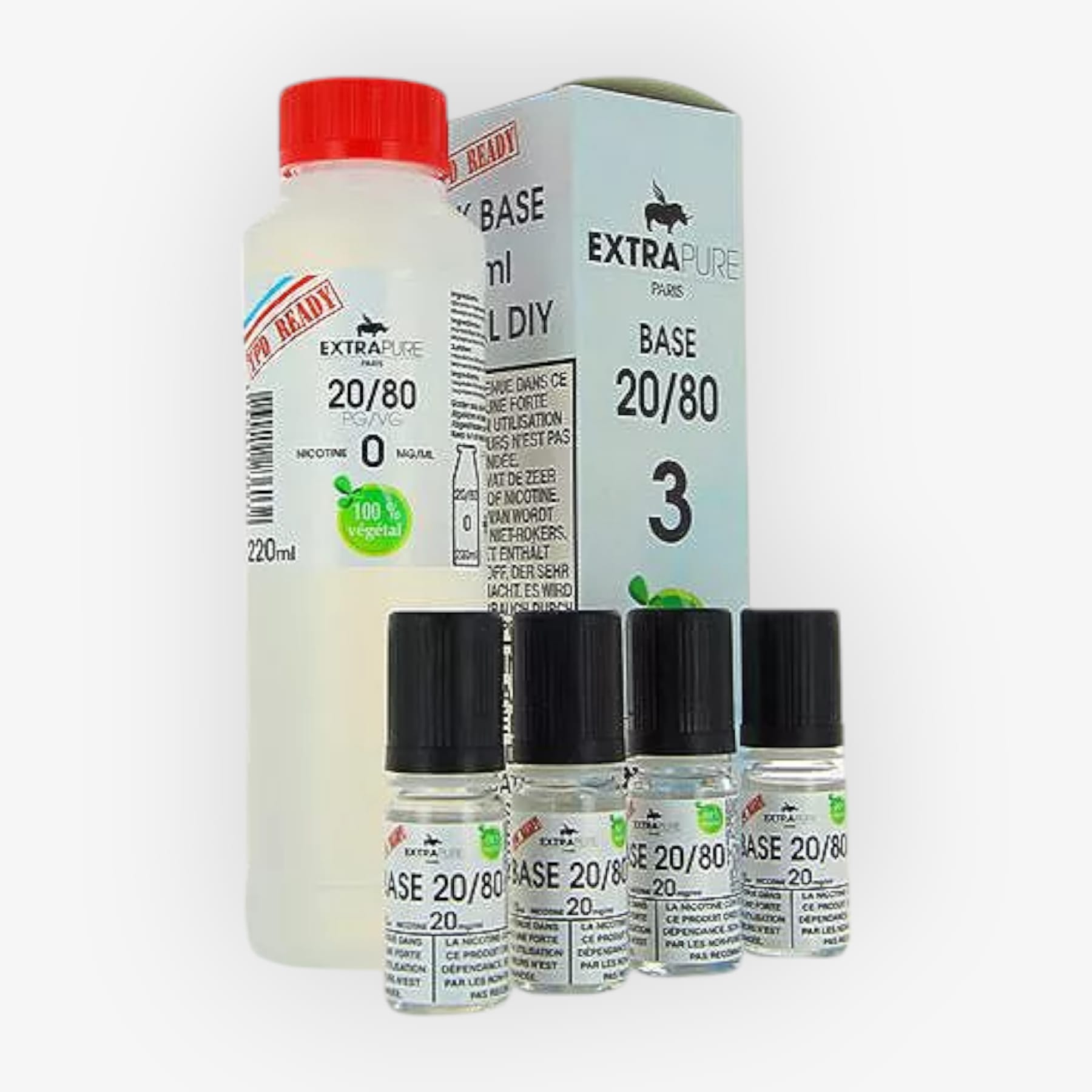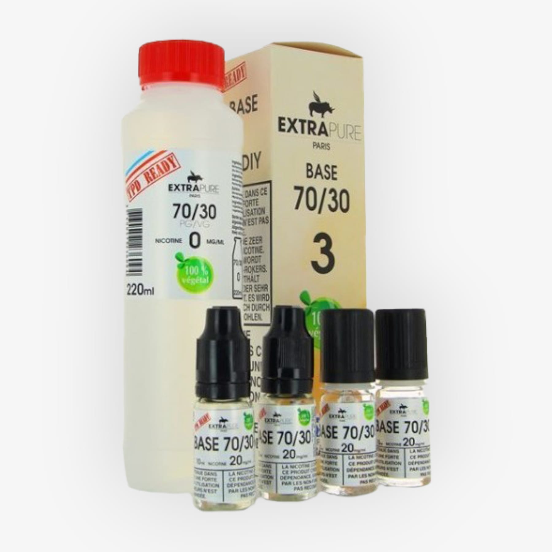 La réglementation TPD limite la vente de e-liquides nicotinés à 10 ml et à une concentration maximale de 20 mg/ml. Pour le DIY, les bases sans nicotine sont disponibles en quantité et peuvent être nicotinées par l’ajout de boosters. Les flacons de ces boosters, limités à 10 ml, permettent d’obtenir un e-liquide avec le taux de nicotine souhaité.