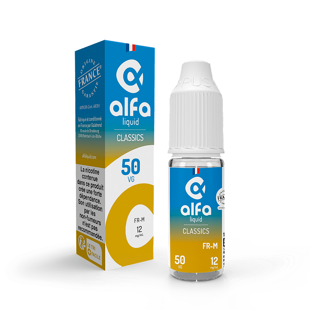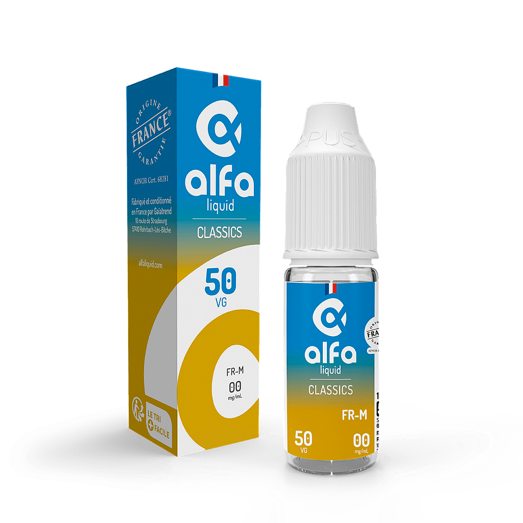 De plus, la marque Alfaliquid n’utilise pour ses e-liquides que des arômes de qualité alimentaire naturels ou de synthèse dans son e-liquide FR-M.