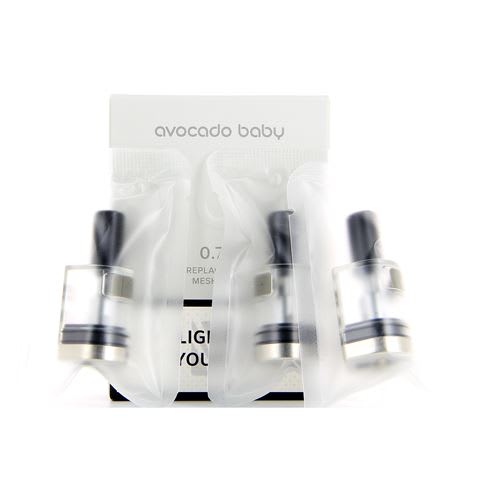 Pack de 3 pods de 2 ml de contenance avec résistance intégrée (non remplaçable) en 0,7 ohm ou 1,2 ohm. Ces pods sont compatibles avec le kit Avocado Baby de la marque Vaptio.