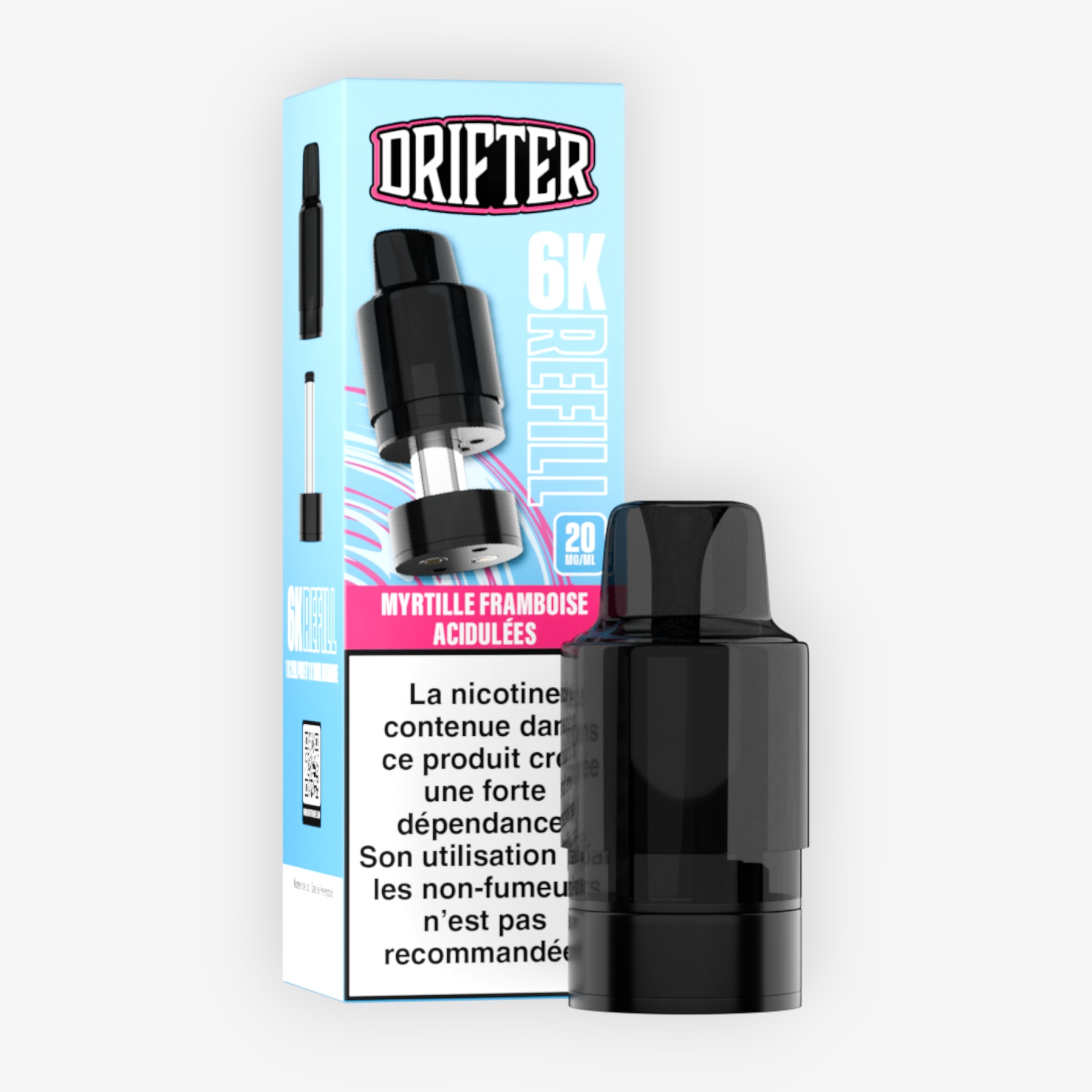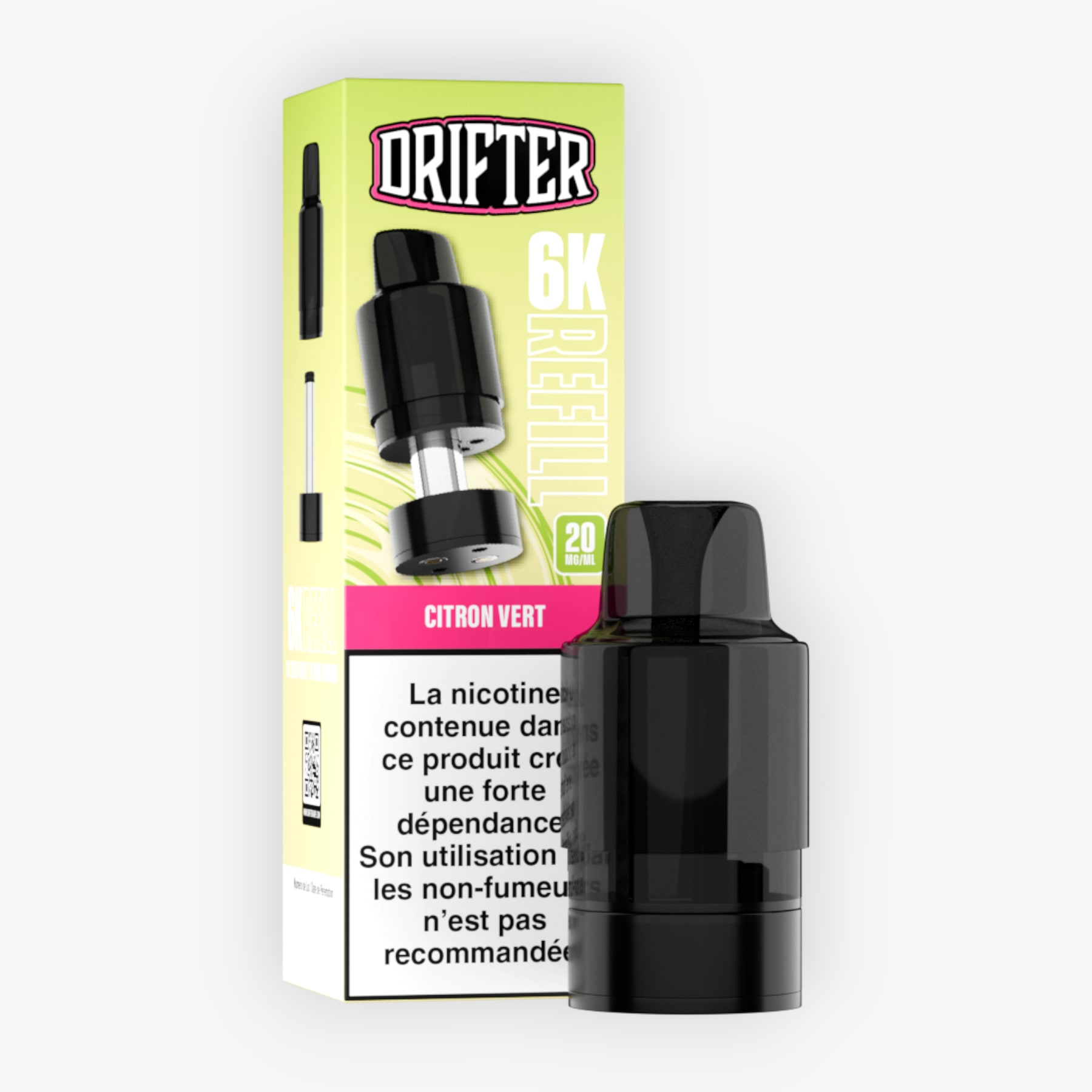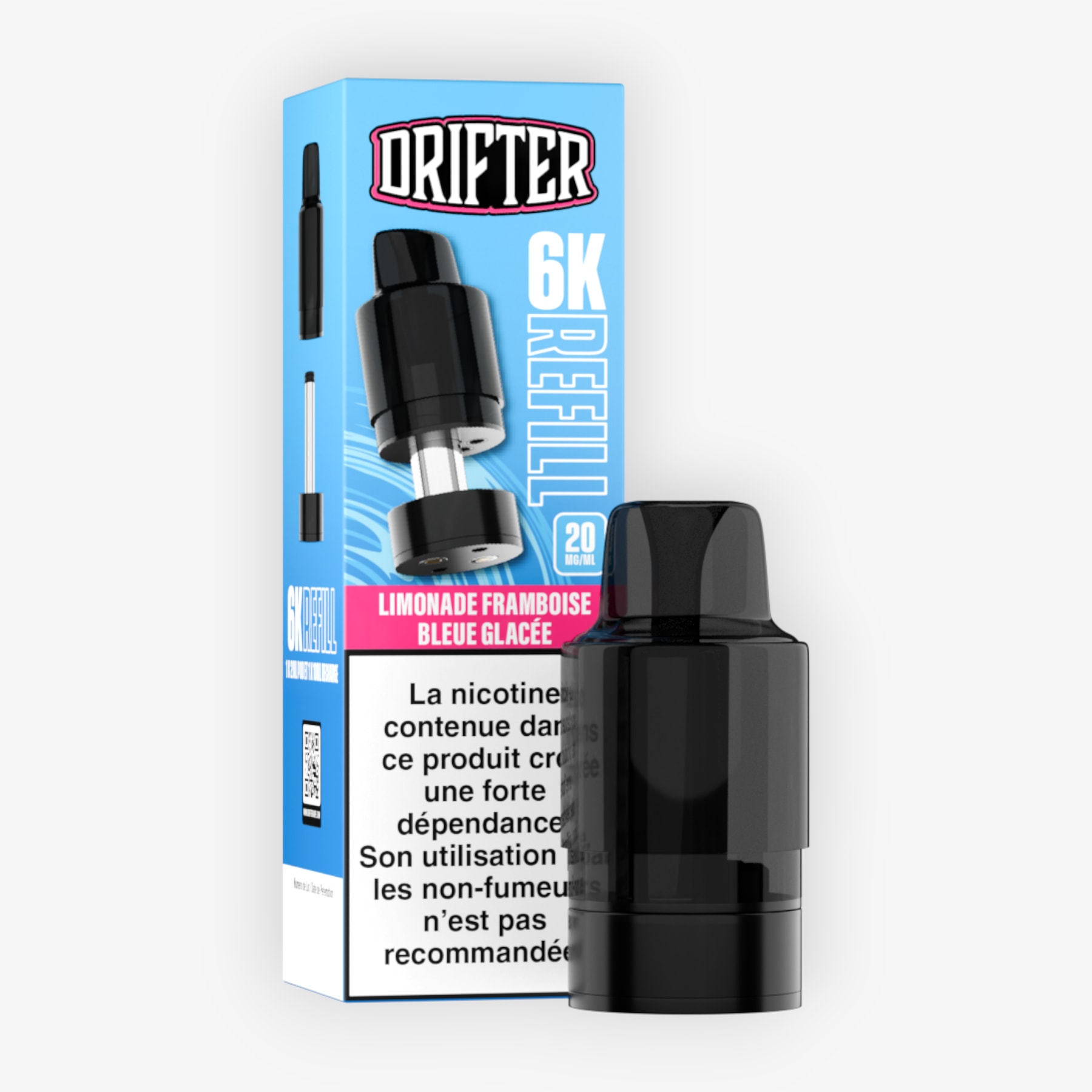Préremplie de 2ml d’e-liquide, associée à un réservoir de 10ml et dosée à 20mg de sels de nicotine, la cartouche 6k Drifter Bar est conçue pour fonctionner sur la batterie de la puff du même nom (non fournie), le tout formant une puff contenant 12ml d'e-liquide et permettant 6000 taffs. Une fois cette cartouche vidée, conservez la batterie, rechargez-la via un câble USB Type-C et remplacez la cartouche en choisissant parmi les nombreuses saveurs disponibles.