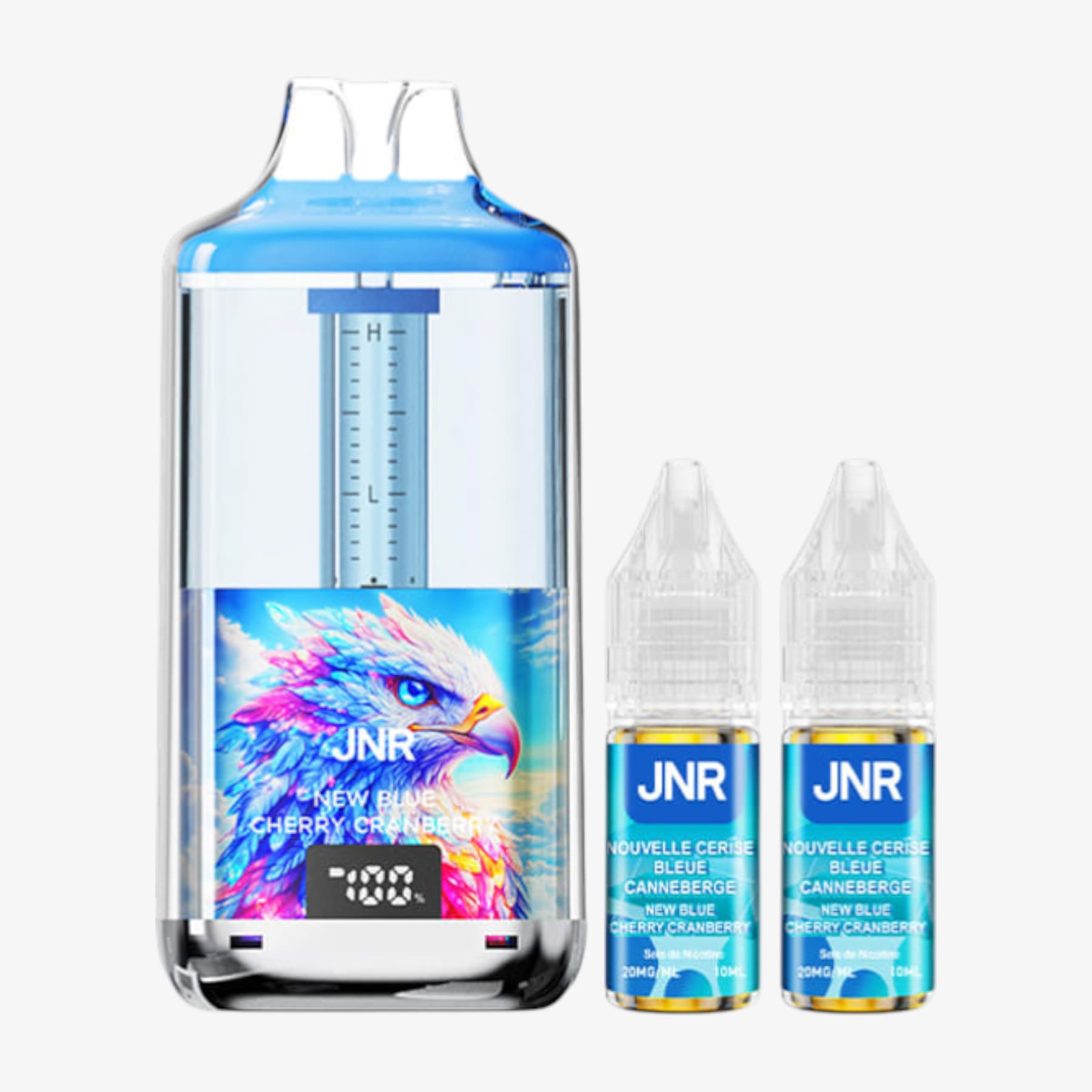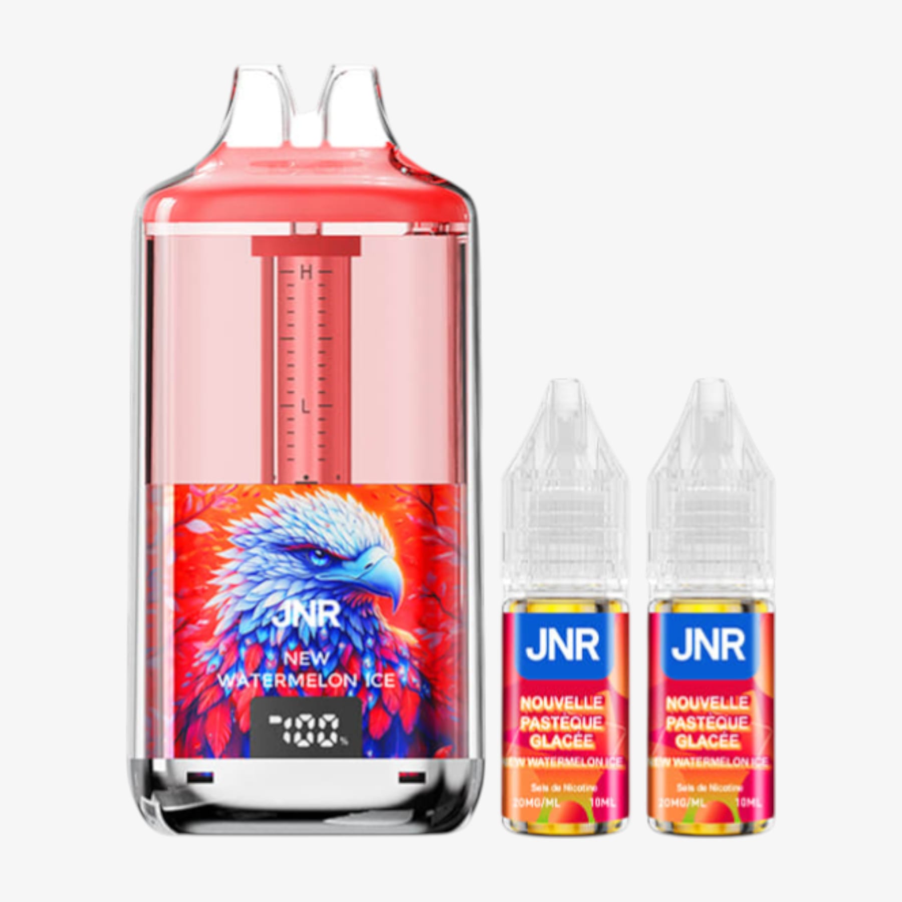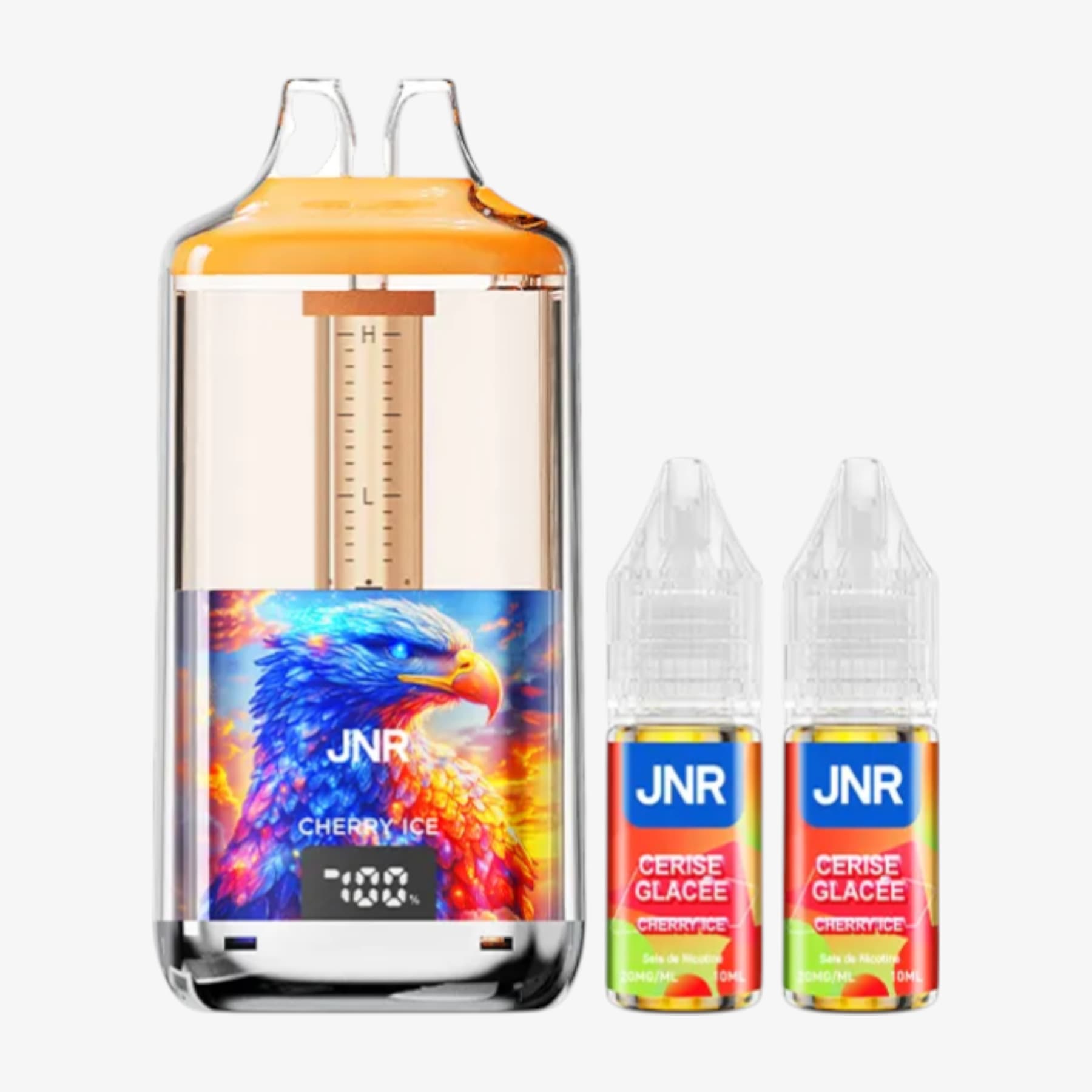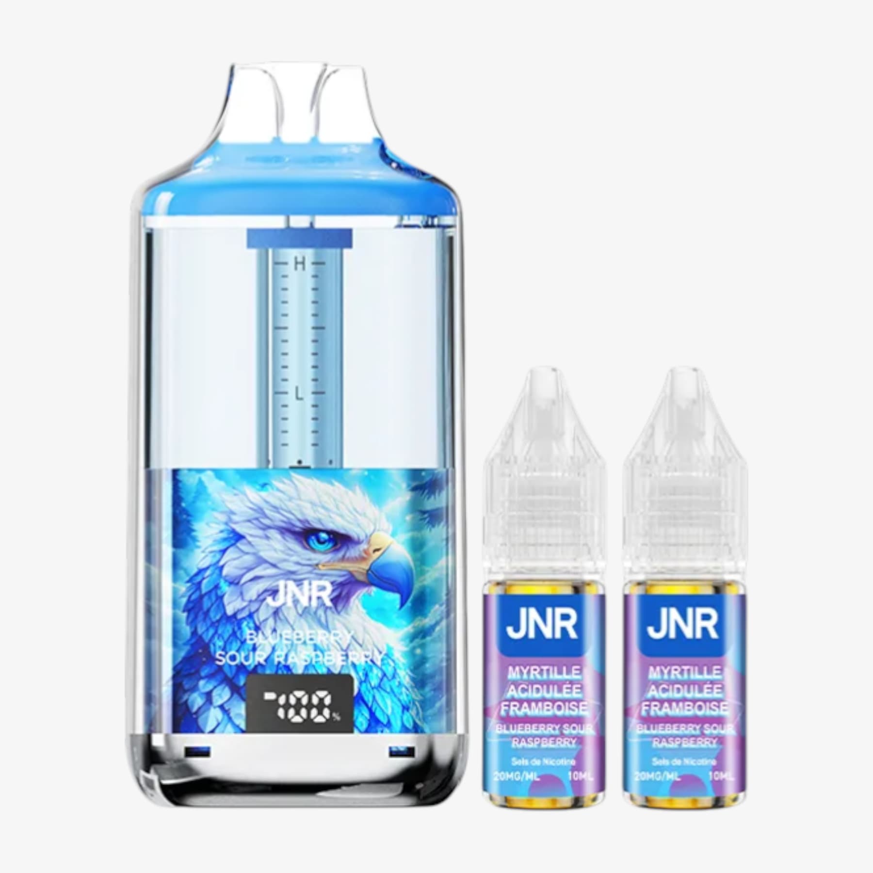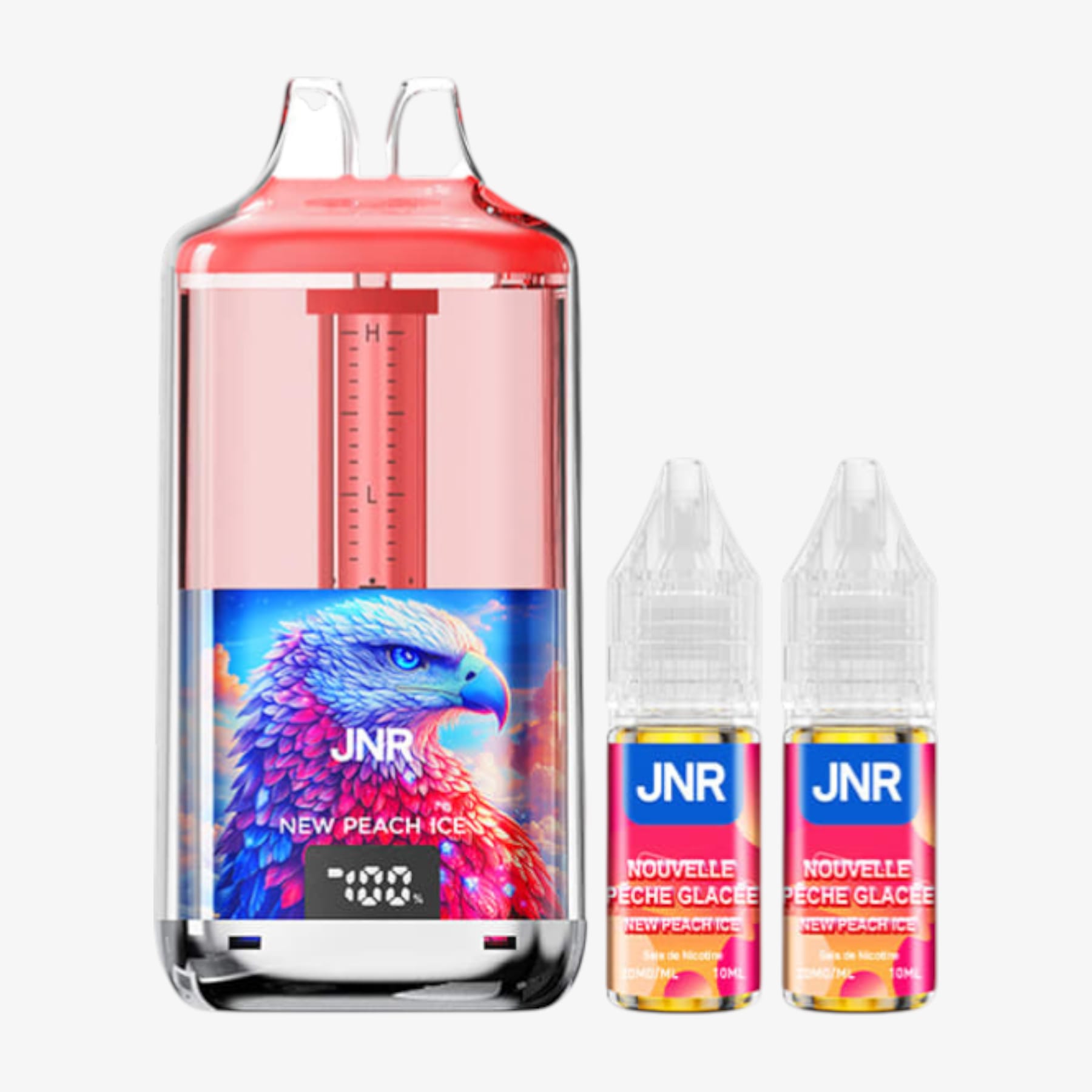 La Falcon Gem+ 30k de JNR constitue une big puff remarquable. En effet, elle compte un réservoir prérempli de 2ml et une batterie intégrée de 950mAh rechargable par le biais d'un câble USB Type-C (non fourni). Elle est également livrée avec 2 fioles de 10ml contenant chacune 20mg de sels de nicotine et, grâce à elles, vous aurez la possibilité de pratiquer la quantité impressionnante de 30000 bouffées. De plus, ce produit possède un écran indiquant le niveau de charge et un système de graduation du niveau d'e-liquide. Voilà donc une puff de référence.