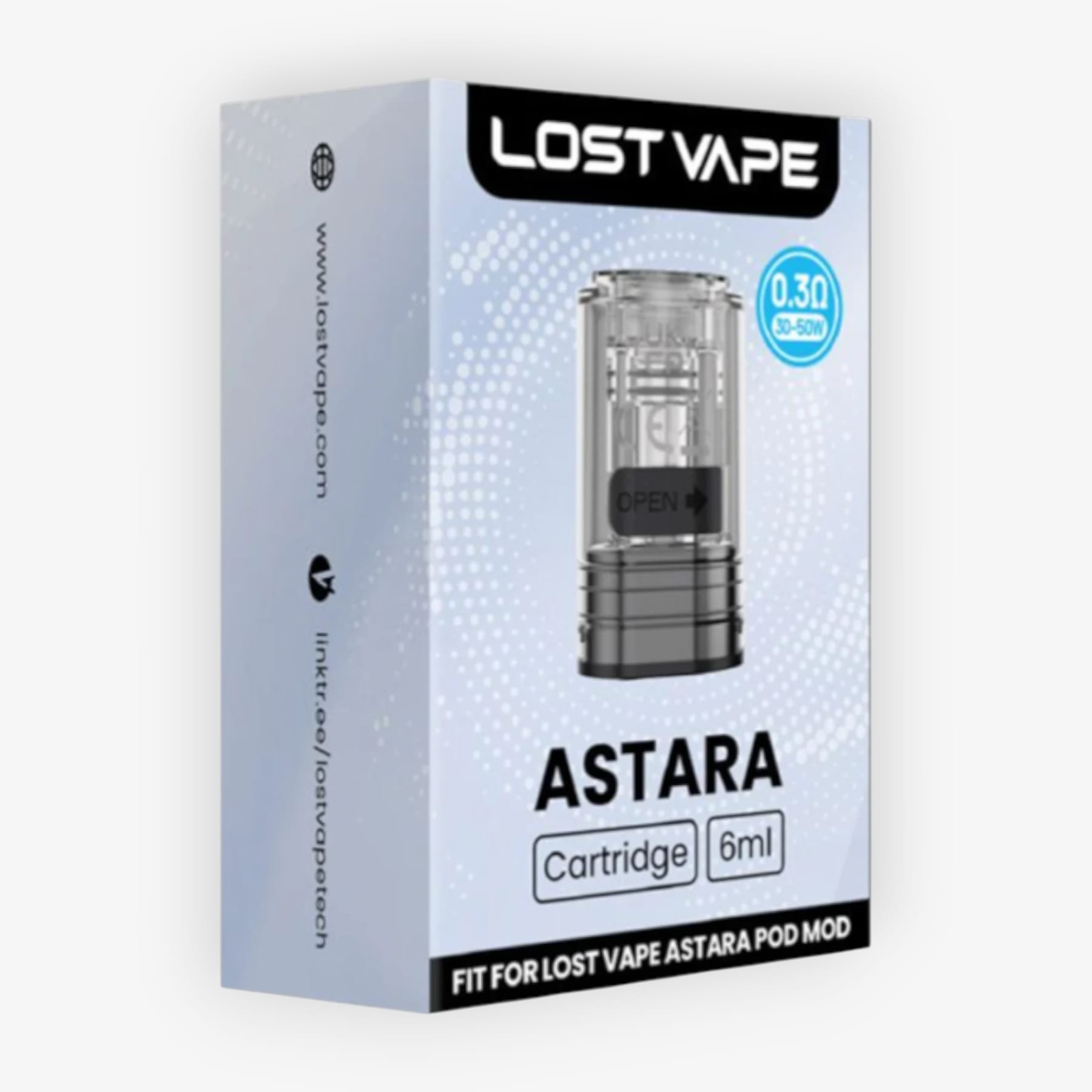 Une cartouche de 6ml avec résistance intégrée et destinée à la chicha électronique Astara de Lost Vape.