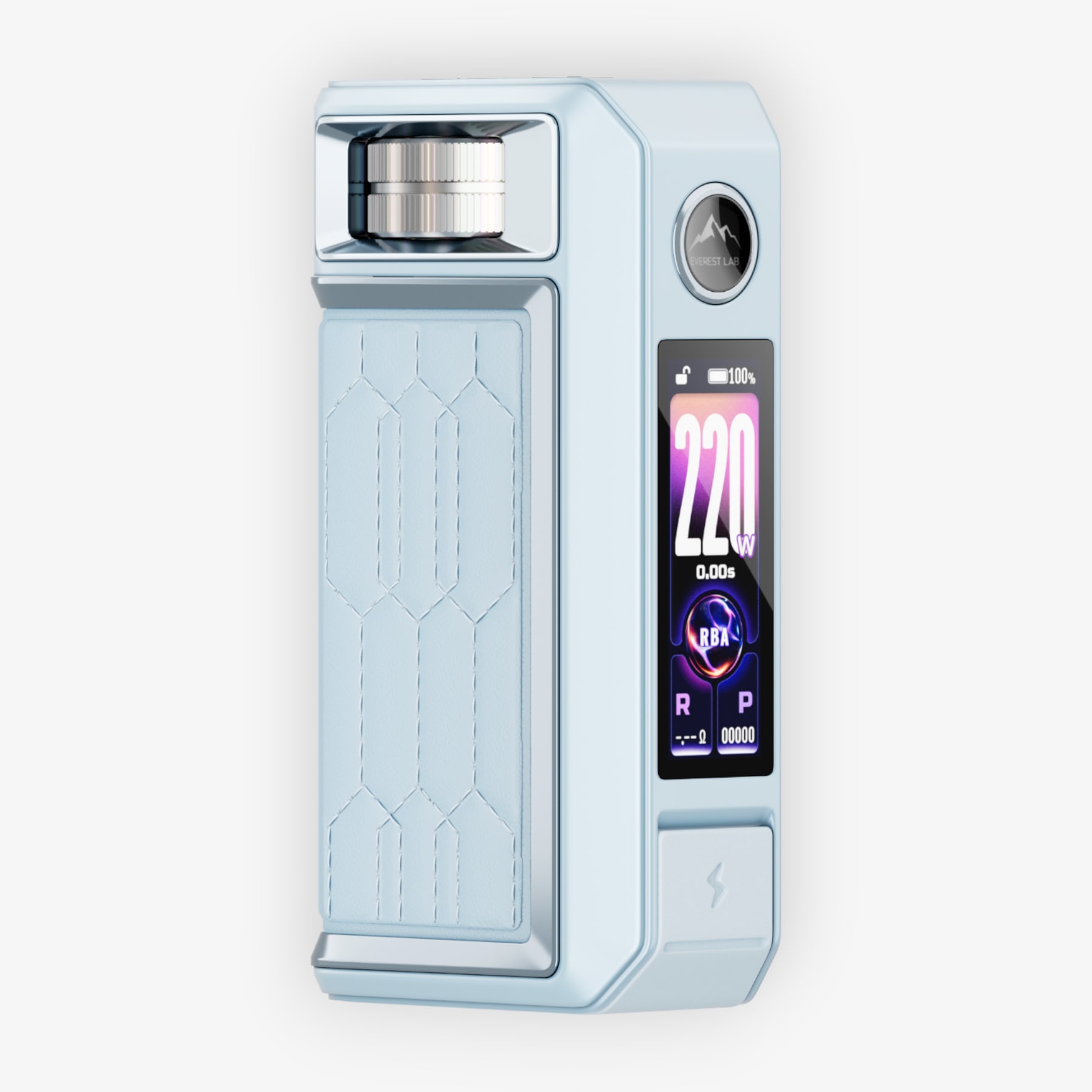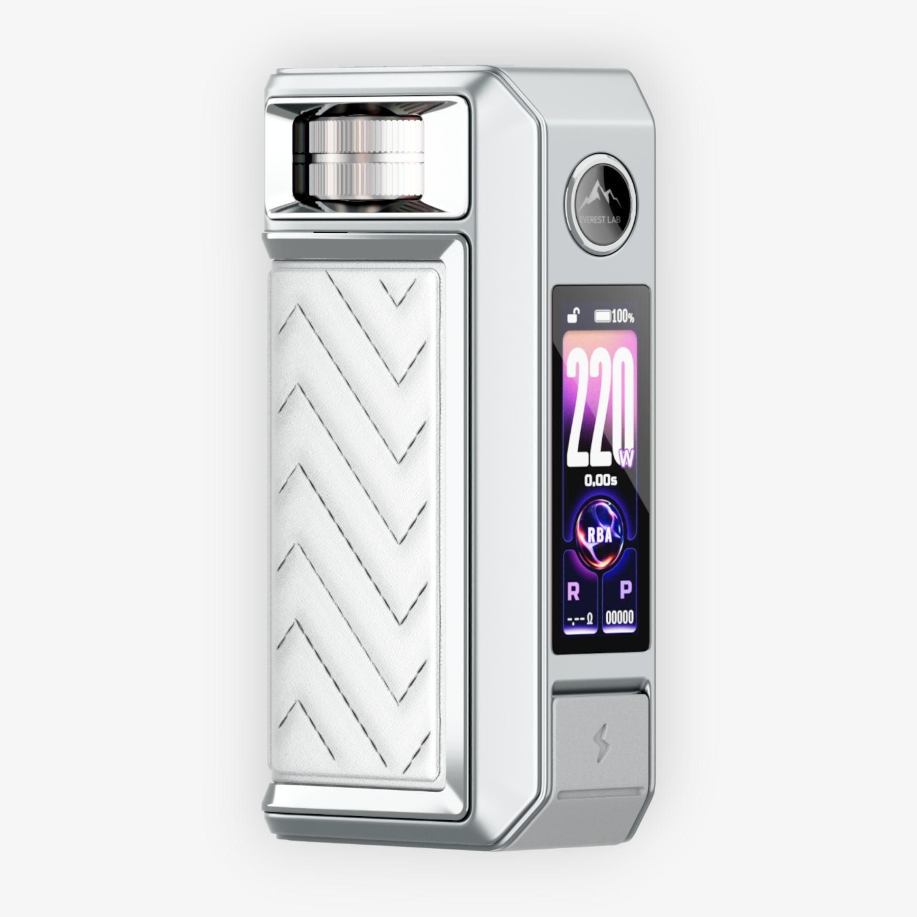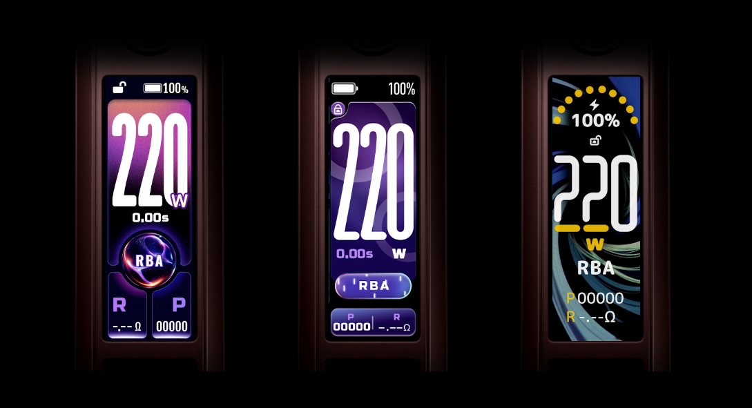 L'écran TFT couleur de 1,66" permet de contrôler ces paramètres et d’afficher les informations essentielles, comme la puissance, le niveau de batterie, la valeur de la résistance ou encore le mode utilisé. L’interface peut être aussi personnalisée grâce à plusieurs thèmes d’affichage au choix et l’appareil intègre 6 protections électroniques pour un emploi sécurisé.